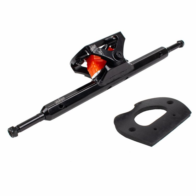 The MBS Metal Matrix II Trucks introduce ultra-strong high-precision 6061-T6 aluminum top trucks to the shockblock-powered Matrix II truck system that have become the new standard for channel trucks. Lightweight, strong, and highly versatile, the Metal Matrix II trucks offer infinite control of turning resistance with coarse adjustment offered by three different shockblock hardnesses and fine adjustment delivered from the simple turn of the MBS Matrix II adjustment screws.